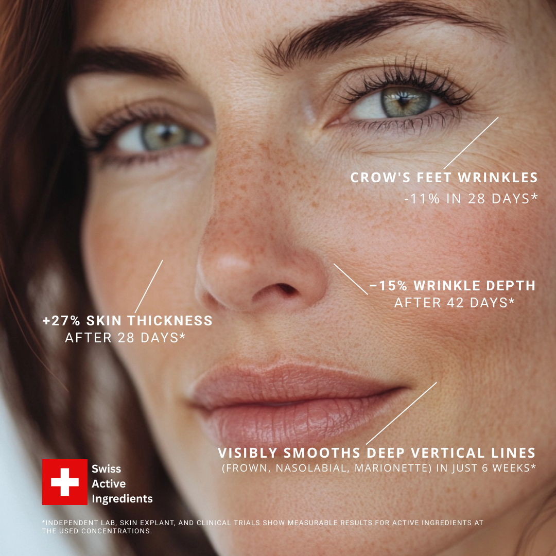 - Bewezen in laboratoriumtests, huidmodellen en een klinische studie van 28 dagen met vrouwen van 35-56 jaar.