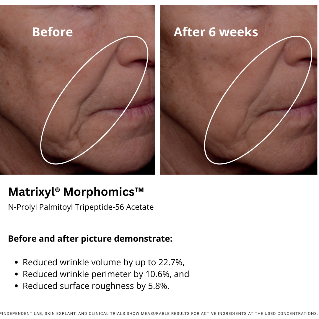 Deze resultaten bevestigen Matrixyl® Morphomics™ als een baanbrekende peptide voor het zichtbaar verminderen van diepe verticale lijntjes en het herstellen van een gladder, jeugdiger huidoppervlak.